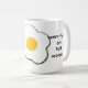 Tasse mit einem Bild eines Eis und den Worten: "Ein wahrer Freund denkt, dass du ein gutes Ei bist, selbst wenn du halb geknackt bist."