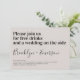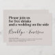 Laden Sie Freunde und Familie zu Ihren Hochzeitsfeiern mit dieser lustigen Einladung ein. Der Text lautet: "Bitte schließen Sie sich uns für kostenlose Getränke und eine Hochzeit auf der Seite an"