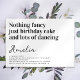 🎉 laden Freunde und Familie ein, einen Geburtstag mit dieser lustigen Typografie-Geburtstagsfeier zu feiern. Der Text lautet "Nichts extravagantes nur Geburtstagstorte und viel Tanzen"