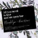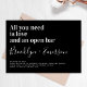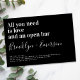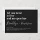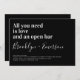 Laden Sie Freunde und Familie zu Ihren Hochzeitsfeiern mit dieser lustigen Einladung ein. Der Text lautet: "Alles, was Sie brauchen, ist Liebe und eine offene Bar"