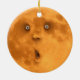 Ornament mit einem originellen Foto Vollmond mit Augen, Nase und Mund, sodass es lustig und überrascht aussieht.