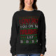 Funny Ugly Weihnachts Sweater Naughty List Strick Script Women's Sweatshirts enthält den Text "I can get you on the naughty list" in einer trendigen Winter Strick Drehbuch Typografie mit Schneeflocken und Weihnachtsbäumen. Ideal für Weihnachten- und Feiertagsfeiern und Feiern. Entworfen von ©Evco Holidays www.zazzle.com/store/evcoholidays