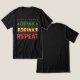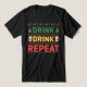Funny Ugly Christmas Sweater Drink Bier Script Herren T - Shirt zeigt den Text "Drink Drink Wiederholung" in einem trendigen Winter Strick Skript Typografie mit Rentier, Weihnachtsbäume und Bier Tasse. Ideal für Weihnachten- und Feiertagsfeiern und Feiern. Entworfen von ©Evco Holidays www.zazzle.com/store/evcoholidays