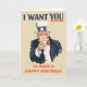 Uncle Sam will dir einen glücklichen Geburtstag! Diese Geburtstagskarte hat das Aussehen des klassischen Uncle Sam Rekrutierungspakets und ist somit perfekt für amerikanische Geschichtsschwärmer, patriotische Freunde und vieles mehr. Außerdem können sowohl der rote als auch der marineblau Text auf der Innenseite dieser Karte mit Ihrem Gruß angepasst werden, sodass Sie die perfekte personalisierte Geburtstagskarte erstellen oder den Text so verlassen haben, wie er ist. Der Standardtext auf der Vorderseite liest sich: ICH WOLLTE IHNEN, EINEN GLÜCKLICHEN GEBURTSTAG ZU HABEN, und innen drauf steht: NICHT DRAMATISCH ZU SEIN, ABER DAS GESCHEHEN DER NATION HÄNGT DAVON AB, DASS SIE EINEN SEHR GLÜCKLICHEN GEBURTSTAG HABEN!