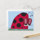 Der lustige und euphorische Ladybug steht unter dem Feld des grünen Grases, mit einem Blick von reinem Inhalt.