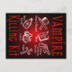 Das Bild ist eine stilisierte Abbildung eines Vampirtötungskits. Die Wörter "VAMPIRE" und "KILLING KIT" sind in einem großen, roten, gotischen Schriftart oben bzw. unten geschrieben. Dazwischen gibt es sechs weiße Skizzen von Gegenständen, die traditionell zur Tötung von Vampire verwendet werden: ein Pfahl und Ballett, eine Bibel, eine Pistole mit Silberkugeln, eine Flasche heiligen Wassers, Knoblauch und ein Kreuz. Perfektes Geschenk für Goten und Vampirliebhaber.