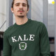 Looks totally legit until you inspect closer... This is a sweatshirt for my vegan friends. 'Kale' university college style logo with a school crest made of leaves of kale and banners that say 'eat your veggies,' and 'vegan.' This is bold but funny, and everyone will have a laugh! Show off your vegetarian pride, and your love for animals with this cool sweatshirt.