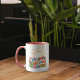 Diese Tasse "Morgen braucht mehr Veganer" enthält ein Zitat mit Blume und Sonne.