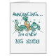 Funny Veggies Neue Big Sister T - Shirt, Karosse, Schlüsselketten, Tasten, Taschen, Tasse, Aufkleber, Karten und andere große Schwesterstücke mit mehreren albernen Veggies mit Augen und Text, die lautet "Ansage...Ich bin ein NEUER BIG SISTER!!".