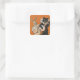 Niedlich orangefarbener Aufkleber mit der Kunst der Künstlerin Nellie Murphy. 1895 kreierte sie dieses lustige Bild eines Banjo spielenden Kaninchens und einer Katze für das Titelblatt des Magazins "Black Cat". Das Gemälde mit einem lebhaften orangefarbenen Hintergrund ist ein wunderbares Beispiel für die anthropomorphische Kunst, die im späten 19. und frühen 20. Jahrhundert populär war.