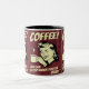 Hier ist eine humorvolle Vintage Kaffee-Tasse, um Ihren geschäftigen Tag zu beginnen. In der Vintagen Kaffee-Tasse befindet sich eine Dame, die eine Tasse hält, die offenbar mit Kaffee gefüllt ist. Die Bildunterschrift lautet: "Kaffee kann man schlafen, wenn man tot ist!" Ich denke, diese Anzeige ist unglaublich witzig und ich hoffe, Sie tun es auch. Sie können diese lustige Vintage Kaffee-Tasse in meinem Print on Demand Shop erwerben. Bis zum nächsten Mal kühlen und genießen