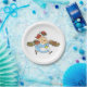 Eine lustige Kellnerin mit viel Essen. Dieses Design wirkt auf diese Paper-Teller sehr effektiv