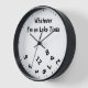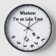 Funny, was auch immer ich auf der Uhr bin, lustig, egal was Uhr, wer sich um Zeit kümmert, was die Stunde ist, ich bin auf Seehaus Zeit, im Urlaub, entspannend entspannender Spaß Witz, eine Pause Zeit zu haben, humorvoller Breaktime Spaß, stressfreies Leben, Schwarz und Weiß.