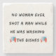 Keine Frau schoss je einen Mann, während er die Geschirr gewaschen hatte, und lustige Geschirr zitierten. Keine Frau schoss je einen Mann, während er die Geschirr gewaschen hatte: Ein lustiges Geschirr, das Design zitiert. Es ist perfekt für jeden, der nicht gerne Geschirr macht. Warum nicht dieses Design für sich selbst oder als Geburtstag- oder Weihnachtsgeschenk für Ihren besten Freund, Ehemann,