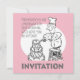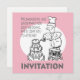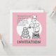Diese Hochzeitseinladung zeigt einen Cartoon eines riesigen Kuchens, der vorbereitet wird!
