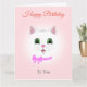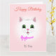 Funny White Cat Face on Light Pink Birthday Karte