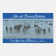 Dieses schöne, originelle Foto zeigt eine Herde von Weißschwanz-Hirschen, die auf einer schneebedeckten Autobahn auf der Prärie verläuft. Der Text lautet "Wünscht dir ein weiße Weihnachten.
