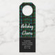Fügen Sie Ihren Urlaubsgetränken das Geschenk des Spaßes mit personalisierten Flaschenhaltern hinzu. Sie zeichnen sich durch eine kalligraphische Kreide aus, die auf einem illustrierten Kiefernbaumhintergrund steht, und eine einfache Kreide auf schwarzem Hintergrund, die eine Tafel darstellt. Die Rückseite ist weiß mit einer kleinen Meldung in schwarzen Buchstaben. Alle Texte in diesem Design können mit den Optionen behalten oder gelöscht werden, um einen Leerraum zu erhalten. Design von Frau_Jade.