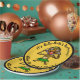 Einzigartige, lustige und völlig coole Teller aus Papier, die mit einem eigenartigen, originellen Design der Digitalkünstlerin geschmückt sind. Leslie Sigal Javorek präsentiert einen komischen Pacific Island Native Witch Doctor in einem Grasrock, der seine Ohren wackelt und dabei auf einem hellgelben, schwarzgelben Hintergrund die Zunge herausklebt. 2 benutzerdefinierte Textfelder, die Sie personalisieren können, standardmäßig: "Es ist der Geburtstag von Billy-Bob!" & "Himbeeren blasen!"