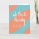 Lustvoll verlassend Karte für diesen gruseligen Arbeitskollegen! Worte auf der Vorderseite der Karte: "Wir vermissen dich schon.. du gruseliger Bugger!" Abstraktes Design in frisch türkisfarben und schwammige pfirsichfarbene Farbpalette mit handgeschriebener weißer Typografie.