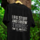 Ein kühnes und witziges Design für Macher, Reparaturliebhaber und Problemlöser. Die Phrase "Ich repariere Sachen und ich weiß Dinge, das ist was ich tue" macht dieses Shirt zu einer witzigen Arbeit, die für jeden, der stolz auf seine Fähigkeiten und seinen Sinn für Spaß ist, eine gute Wahl ist.