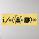 Laut dem Infinite Monkey Theorem, wenn man einem Affen eine Schreibmaschine und eine unendliche Zeit gibt, wird es irgendwann etwas Brillantes schreiben (Shakespeare zum Beispiel). Wenn Sie das Schriftstil dieses Affen sind, könnten Sie dieses Poster genießen. Es zeigt eine Gleichung: i (das imaginäre/fantasievolle du natürlich mit einem Tintenstift) ist ein Affe plus eine Schreibmaschine mal ein Unendlichkeitssymbol. Es ist ein humorvolles Design für Schriftsteller, Journalisten, Drehbuchautoren, Dichter - und alle anderen, die das Äquivalent eines Affen sind, der eine Tastatur klopft.