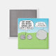 Dieser lustige, quadratische Kühlschrank-Magnet zeichnet sich durch einen großen, aber schüchternen Felsbrocken aus, der einem kleinen Felsbrocken beim Zaubern zusieht. Kleiner Boulder ist ein Spieler! ©2015 Chuck Ingwersen