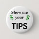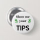 Funny Zeige mir deine Tipps benutzerdefinierte Größe Schaltfläche. Zeigen Sie mir Ihre TIPS Typografie mit 2 grünen Dollarzeichen. Teilen Sie Spaß und Spaß mit Ihren Kunden. Sie können die Größe und Form Ihres Buttons anpassen.