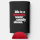 Break das Eis, wo immer du hingehst, mit diesem whimsical Seltzer kann kühler, die dieses philosophische Sprichwort "Leben ist eine Reise" ... und dann folgt mit einem praktischen Vorschlag zu "Tragen Comfy Shoes". Umkehrung zeigt identisches Design. Design © W.H. Sim. Weitere Informationen unter zazzle.com/wordsofwhimsy