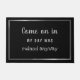 Herzlich willkommen bei Ihren Gästen mit dieser skurrilen Schwarz-Silber-Türmatte, die in der modernen Typografie mit einem eleganten silbernen Rahmen die Wörter "komm in my day was sowieso ruiniert war" enthält. Lass ihnen entscheiden, ob sie gewollt, einzutreten!
