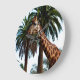 stehende, große Giraffe neben den Palmen, die sich von einem lustigen Giraffe abhebt