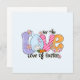 Dieses niedliche und farbenfrohe Design zeichnet sich durch die Phrase "Für die Liebe des Ostens" aus, mit den farbenfrohen Buchstaben des Wortes "Liebe" mit einem niedlichen Hasen- und Osterei. Es ist perfekt für die Ostersonntagsfeiern und ein Geschenk für Ostern.