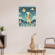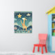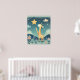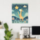 Dieses Kunstwerk zeigt eine bezaubernde Szene einer Giraffe, die vor dem Hintergrund eines Sternenhimmels zu einem hellen, goldenen Stern aufsteigt. Der lange Hals und der sanfte Ausdruck der Giraffe vermitteln ein Gefühl von Staunen und Neugier. Die Illustration wird sanft und skurril mit zarten Texturen und einer beruhigenden Farbpalette dargestellt und schafft so eine beruhigende und bezaubernde Atmosphäre.