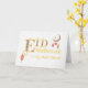 Eine stilvolle Grußkarte für Ihren Freund, mit dekorativer Kontur in goldener Farbe und farbenfrohen islamischen Mustern. Der Gruß auf der Titelseite ist: "Eid Mubarak. an meinen lieben Freund!" In der links unteren Ecke befindet sich eine leuchtend farbige Laterne, die unter dem Buchstaben 'E' hängt, und in der rechten oberen Ecke ein gemusterter Mond und Stern, zwei weitere Laternen und ein vom Mond hängender Islamischer Stern. Der weiße Hintergrund auf der Frontabdeckung ist leicht strukturiert und die innere Nachricht ist nur ein Vorschlag, den Sie ganz einfach ändern oder löschen können.