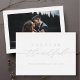 Einfache und elegante kalligraphische Hochzeit danke Ihnen Karte mit einem Foto auf der Rückseite. Ideal für Hochzeiten, Geburtstage, Abschlüsse und andere Veranstaltungen. Klicken Sie auf die SCHALTFLÄCHE BLAUE DESIGN TOOL, um eine erweiterte Anpassung dieses Designs zu erhalten.