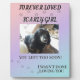 Ein zartes Gedenkdesign mit einem weichen, rosa, lavendel und blauen Farbverlaufshintergrund. In der Mitte befindet sich ein geliebter Foto Bereich, der von sanften Pfotenabdrücken und den Worten „Für immer geliebt“ in eleganter Playfair-Schrift umrahmt wird. Eine subtile Spur von Pfotenabdrücken steigt nach oben, was eine fortwährende Reise und eine ewige Bindung symbolisiert. Diese herzliche Hommage bietet trauernden Eltern Trost und schafft eine dauerhafte Möglichkeit, das Andenken an einen geliebten Begleiter zu ehren.