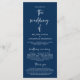 Für immer in der Liebe, Elegant Modern Minimalistisch, Navy Blue Drehbuch, Hochzeitsfeier Programmkarte. Es ist mit Scrollakzent entworfen, der personalisiert werden kann mit benutzerdefiniertem/personalisiertem Text für Ihr Brautparty, Zeremonie Details, Gedenkhinweise und Dankeschön-Nachricht. Wenn Sie weitere Programmkarten-Typen und -Größen suchen, durchsuchen Sie bitte unseren passenden Programmkartenabfrageabschnitt.