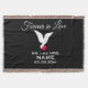Dieses Forever in Liebe Throw Blanket verfügt über eine schöne weiße Taube mit einem Herz, und anpassbarer Text, der Set wurde vor einem schwarzen Hintergrund. Die letzten drei Zeilen auf der Decke können mit Ihren Hochzeitsinformationen personalisiert werden.