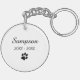 Die Vorderseite dieses Haustier Erinnerung Schlüsselanhänger hat ein Herz / Blumendesign und ein Zitat: Einmal an meiner Seite, immer in meinem Herzen. Die Rückseite hat einen Pfotendruck - personalisieren Sie den Namen und die Lebensdauer des Haustieres.