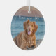 Für immer in unserem Hearts Pet Memorial Individuelle Name Foto halten Glas-Ornament mit dem Namen Ihres Haustieres in einem eleganten weißen Serif Schriftart.