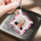 Ein Schlüsselanhänger zum Erinnern, der ein Foto des Geliebten in unserem Herzen für immer trägt und Set mit einem rosa und lila Blumenmuster auf beiden Seiten verbindet. **DRUCKEN auf diesem Schlüsselanhänger ist klein. PASSENDE Artikel in unserer Sammlung. PASSENDE Artikel in unserer Sammlung.
