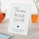 Dieser minimale Stil "Forever in unseren Herzen" Zitat ist das perfekte Design, wenn Sie eine Gedenkleiter oder einen Tisch für verloren geliebte Menschen bei Ihrer Hochzeit oder im Party einrichten.