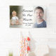 Elegantes "für immer in unserem Herzen" Gedenkbanner personalisiert mit dem Namen und Jahren, und ein vor und nach dem Foto der Person als Kind auf den links und ein neuestes auf der rechten Seite. Gutes Willkommenszeichen für einen Gedenkgottesdienst oder Dekoration für einen weck oder eine Beerdigung. Um die Platzierung des Fotos zu ändern: Klicken Sie auf die Schaltfläche, um es weiter anzupassen, klicken Sie auf "Zuschneiden" und verschieben Sie das Bild.