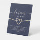 Fügen Sie Ihrer Hochzeit eine Touch Eleganz hinzu mit diesem marineblauen Tafelschild. Mit einem romantischen goldenen Seil-Herz und einer modernen Kalligraphie-Schrift ist es die perfekte Mischung aus Einfachheit und Eleganz, um Ihre Lieben zu ehren.