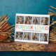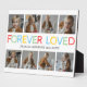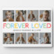 Niedliche Bildplakette mit einem schlichten, weißen Hintergrund, der in jede Farbe verändert werden kann, 8 quadratische Fotos, farbenfrohe Typografie, die "ewig geliebt" liest, und der Name der Kinder.