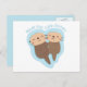 Eine Begrüßungskarte mit niedlichen Fischottern, die auf dem Rücken im Wasser liegen und die Pfoten zusammenhalten, damit sie sich nicht verlieren. Die süße Liebe lautet "Made for each Otter!" Ideal für Paare, Freunde und Freundin für Valentinstag, Jubiläum und besondere Anlässe der Liebe!