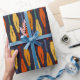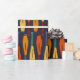 Dieses lustige Packpapier zeichnet sich durch ein Muster von Jonglier-Clubs aus. Die realistischen Stift- und Farbabbildungen sind in Rot, Gelb, Orange, Grün und Blau gehalten und mit Set auf marineblau gehalten.