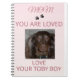Give a pet mom a place to capture her thoughts, plans, and memories with this warm, heartfelt notebook design. Your fur‑kid’s photo is framed on a soft blush‑to‑cream gradient that adds a gentle, uplifting glow. Above the image, the message “Mom You Are Loved” appears with two tiny pawprints for a sweet, emotional touch. Beneath the photo, the word “love” rests above an editable nickname, turning this notebook into a meaningful keepsake she’ll treasure.