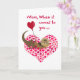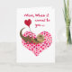 Für die Mama, Mutter, Valentinstag Grußkarte mit einem niedlichen und bezaubernden Otter auf dem Rücken in einem Herzenspool. Der Otter hält einen dunkelroten Herzballon. Nachricht: Mama, Wenn es um dich geht ... Ich bin ganz in. Herzlichen Glückwunsch zum Valentinstag! Art, Bild und Vers Copyright © Shoaff Ballanger Studios, 2023.