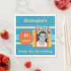 Geburtstagsparty Papierservietten für Männer. Jegliches Alter - Beispiel wird für ein 40. Geburtstagsgeschenk gezeigt. Fügen Sie dem Anzug einen Namen, ein Foto und das Alter hinzu. Blau, gelb und orange. Danke, dass du gekommen bist!